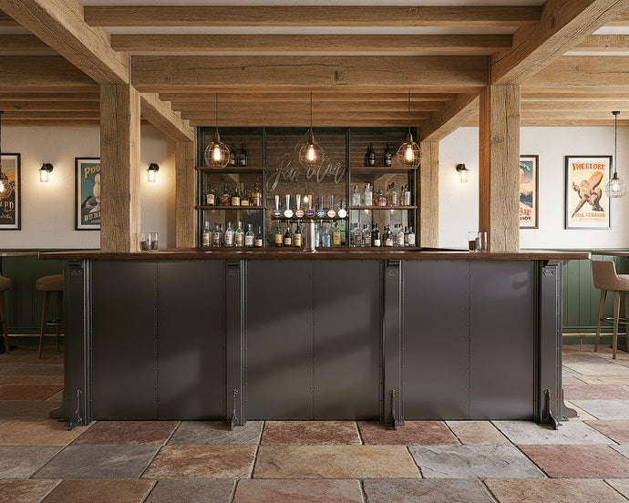 Transform your bar into a statement piece with our industrial-style bar front panels, expertly handcrafted from solid metal in the UK. Designed to bring character, durability, and a unique edge to your space, our metal bar fronts are perfect for pubs, restaurants, home bars, and commercial interiors looking for an authentic industrial aesthetic.