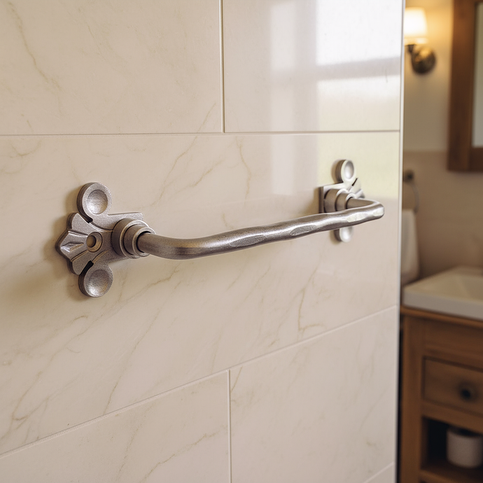 Silver fleur de lis towel rail