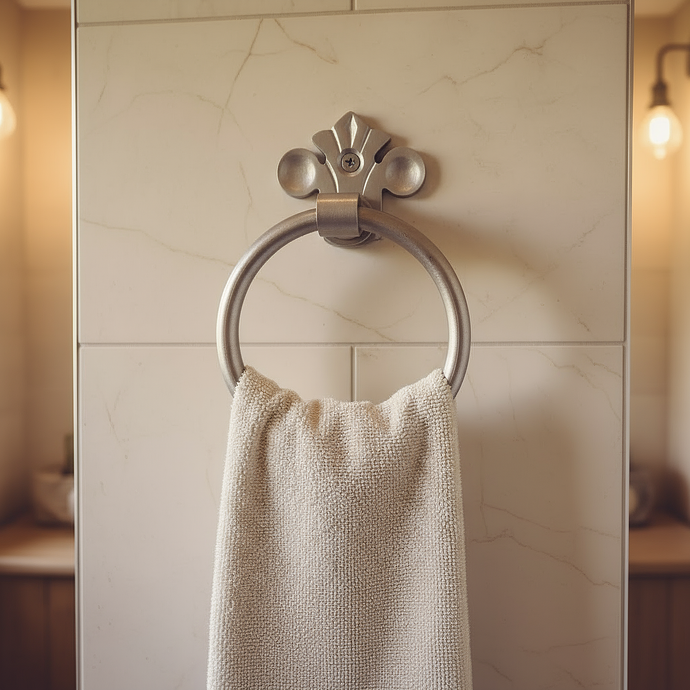 Silver fleur de lis towel ring