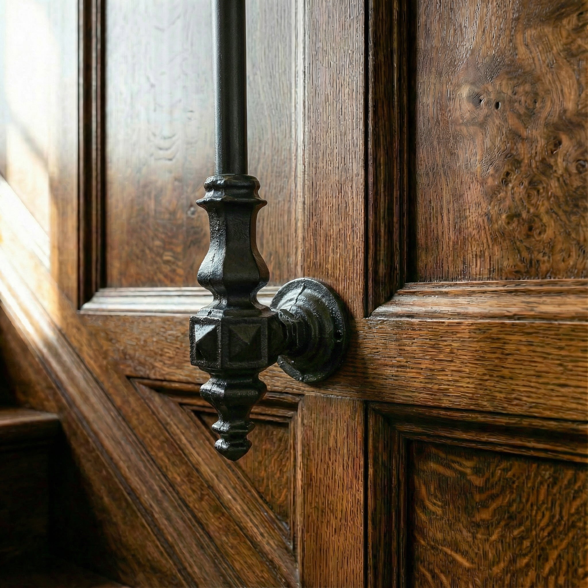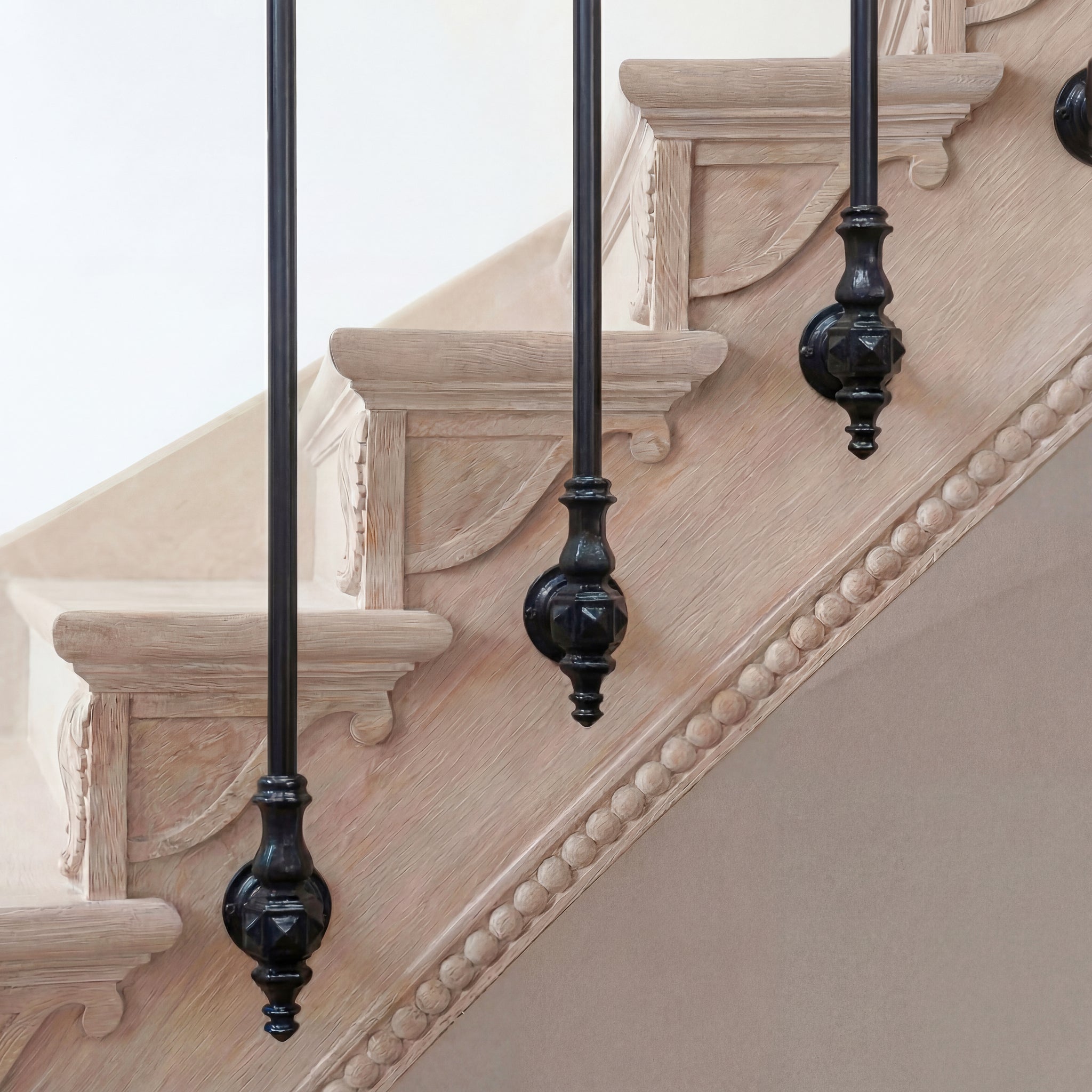 Perfect for period property renovations (Victorian/Edwardian) or grand entryways, these spindles feature a substantial sculptural mounting bracket that mimics classic wood-turning. This design creates a sophisticated, high-end look that is far slimmer and stronger than traditional wooden balusters.
