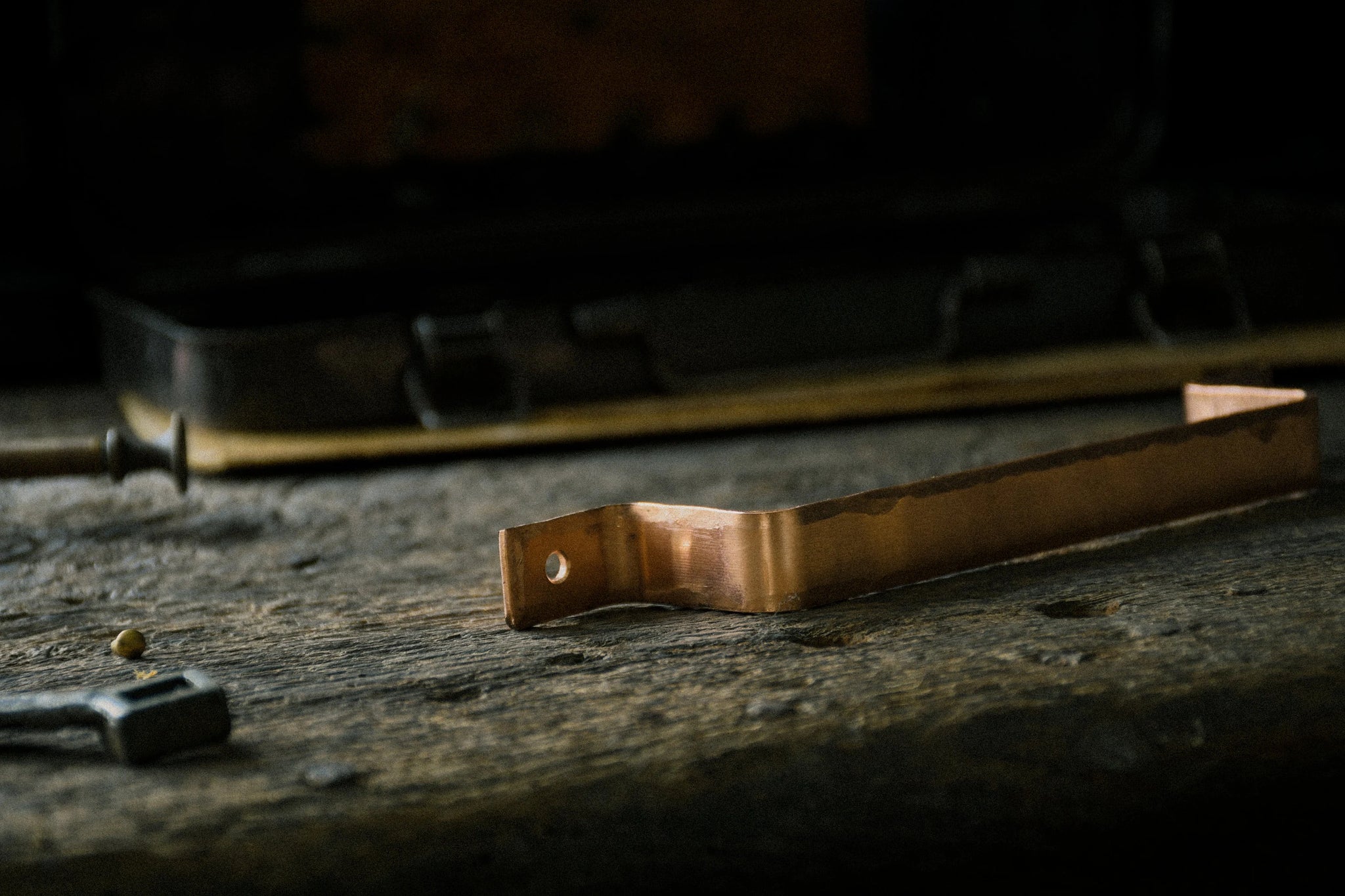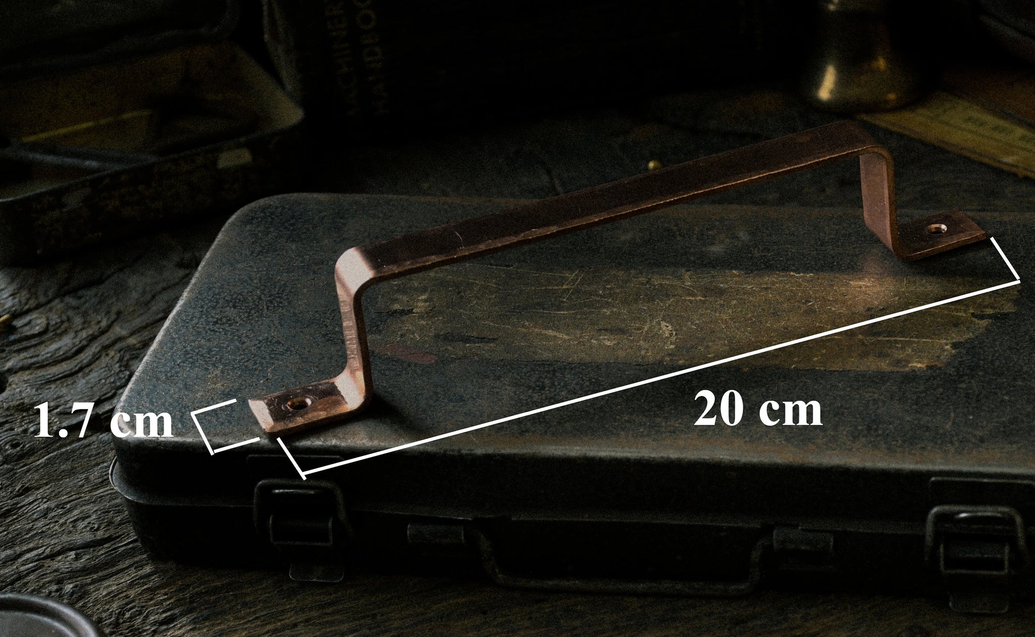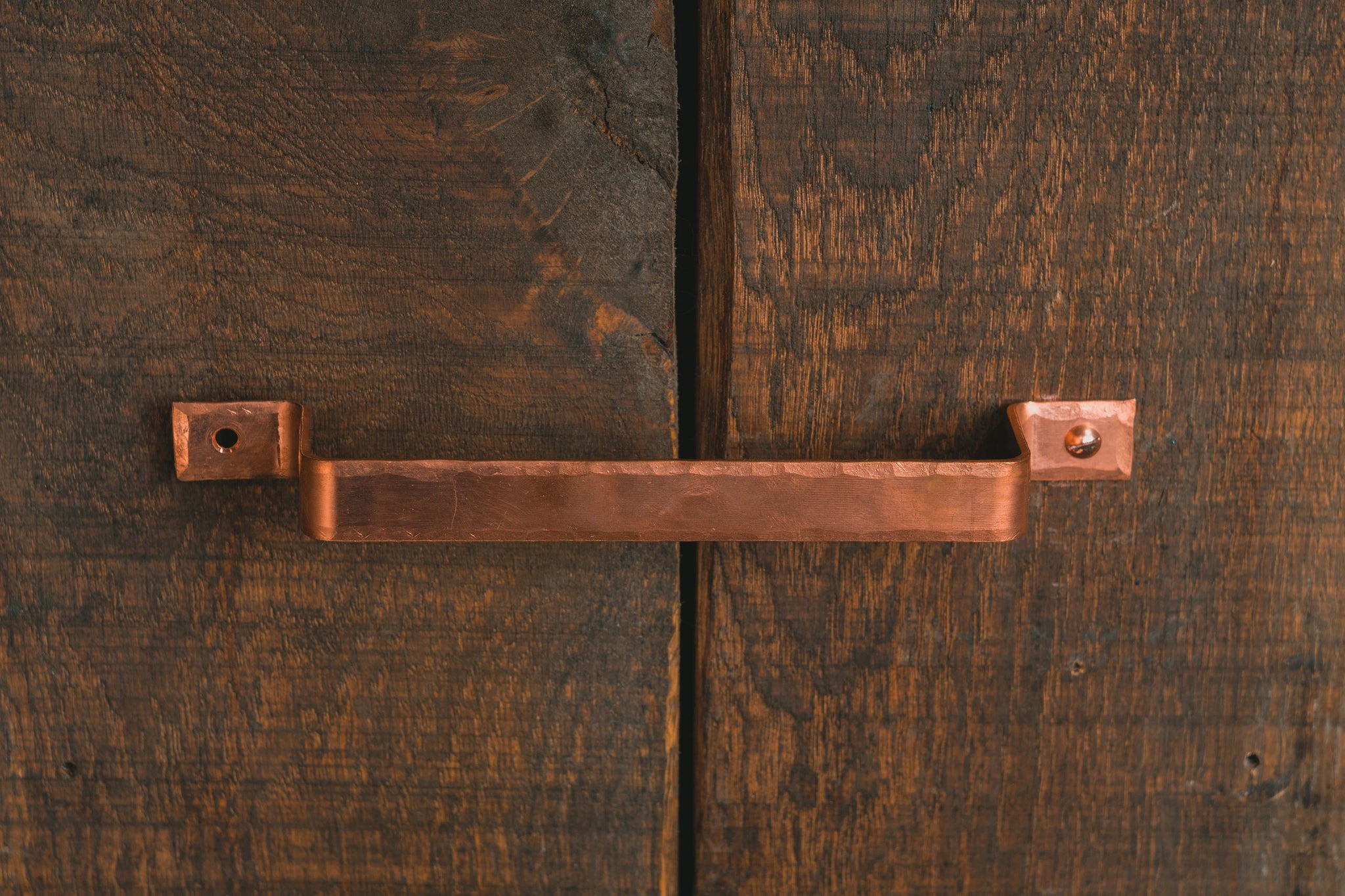 These premium quality door handles are made from hammered edged copper plate and have a smooth metal finish.