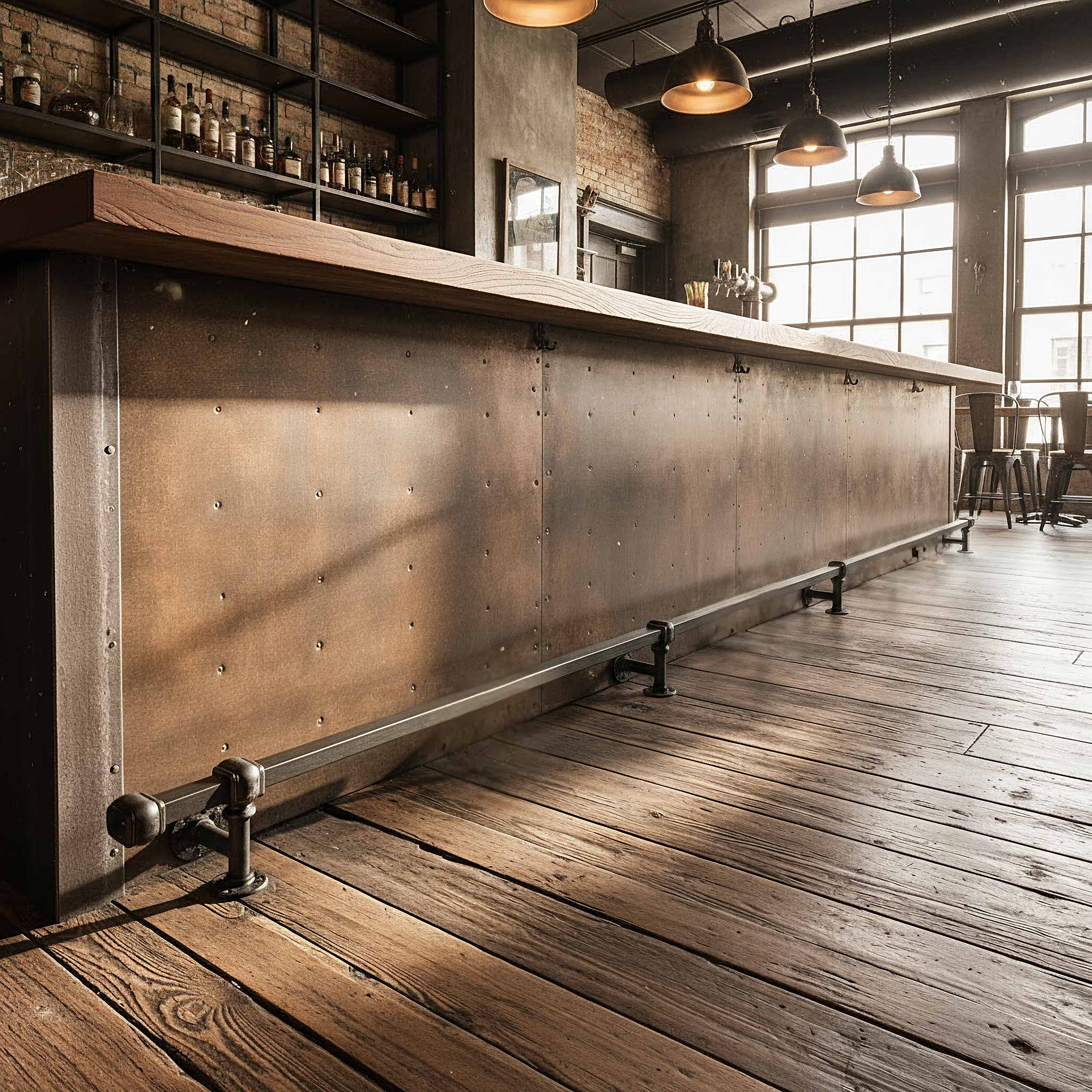 This unique, industrial-style foot rail will be the perfect finishing touch to your chosen space. This durable and stylish statement piece is different to any other foot rail currently on the market; take this opportunity to make your bar or island stand out.