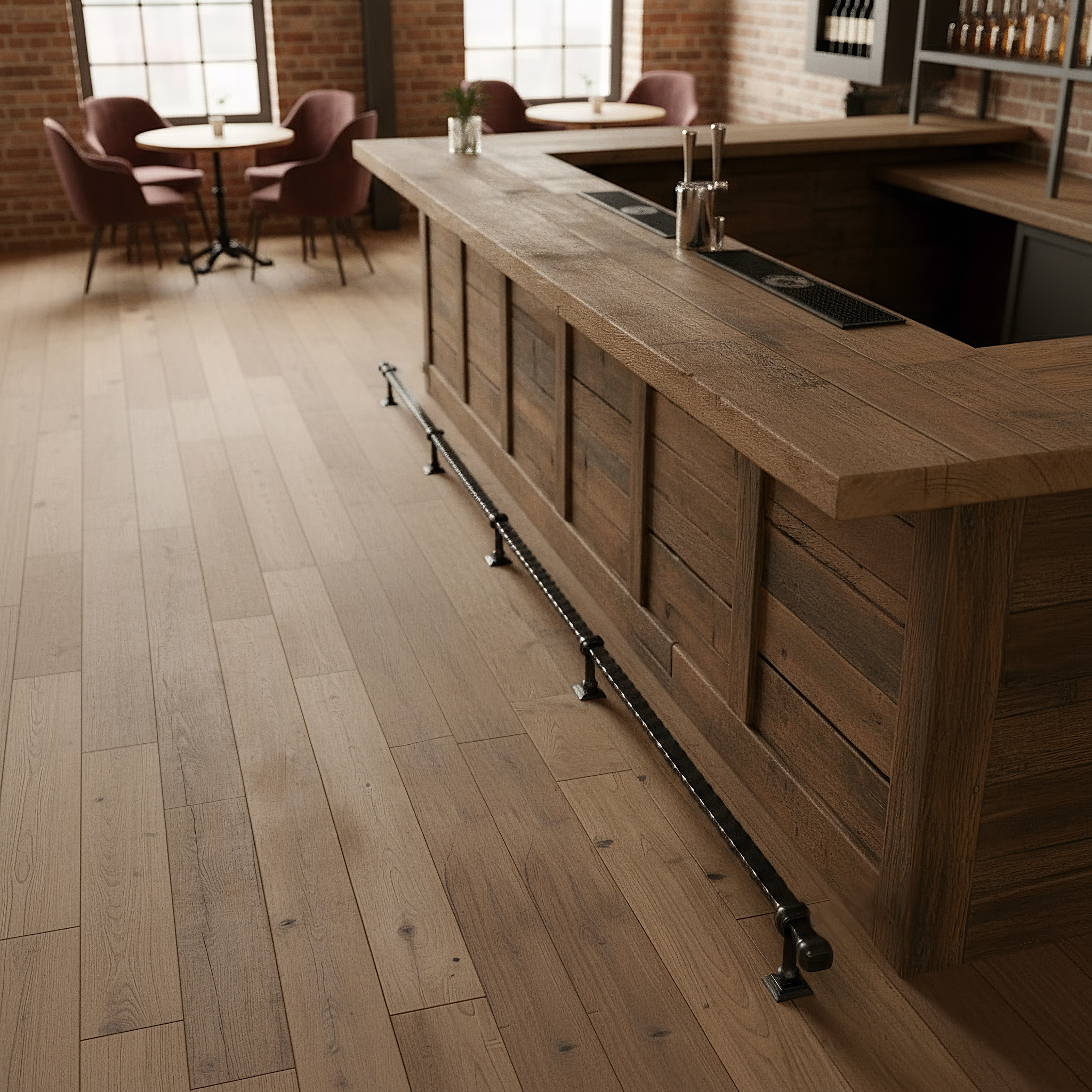 We offer a bespoke range of handrails and footrails you’d need to complete a full design of your home or bar , and with a selection of colours including black, silver, copper and raw steel, our products can go with any paint scheme you may have in your home or business.