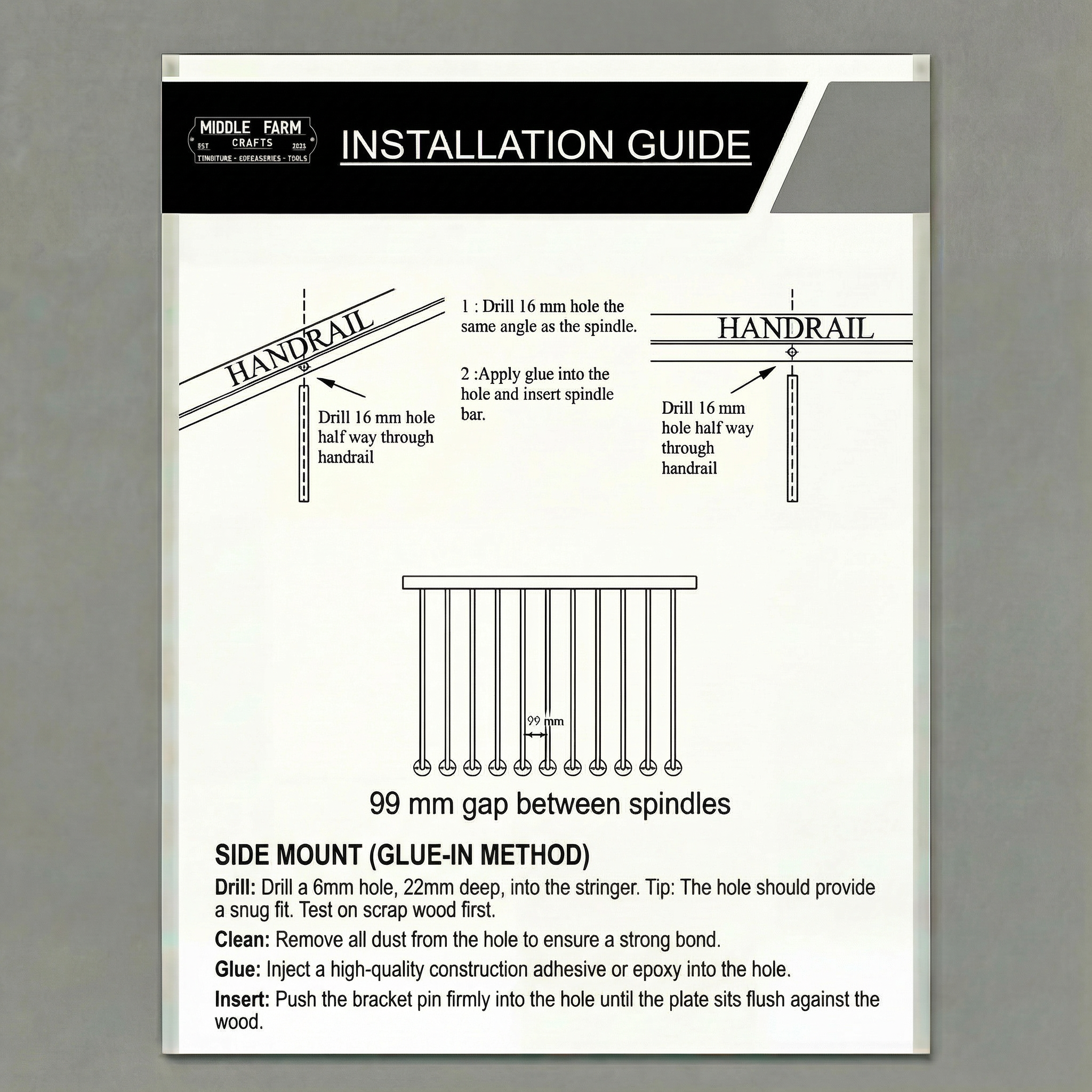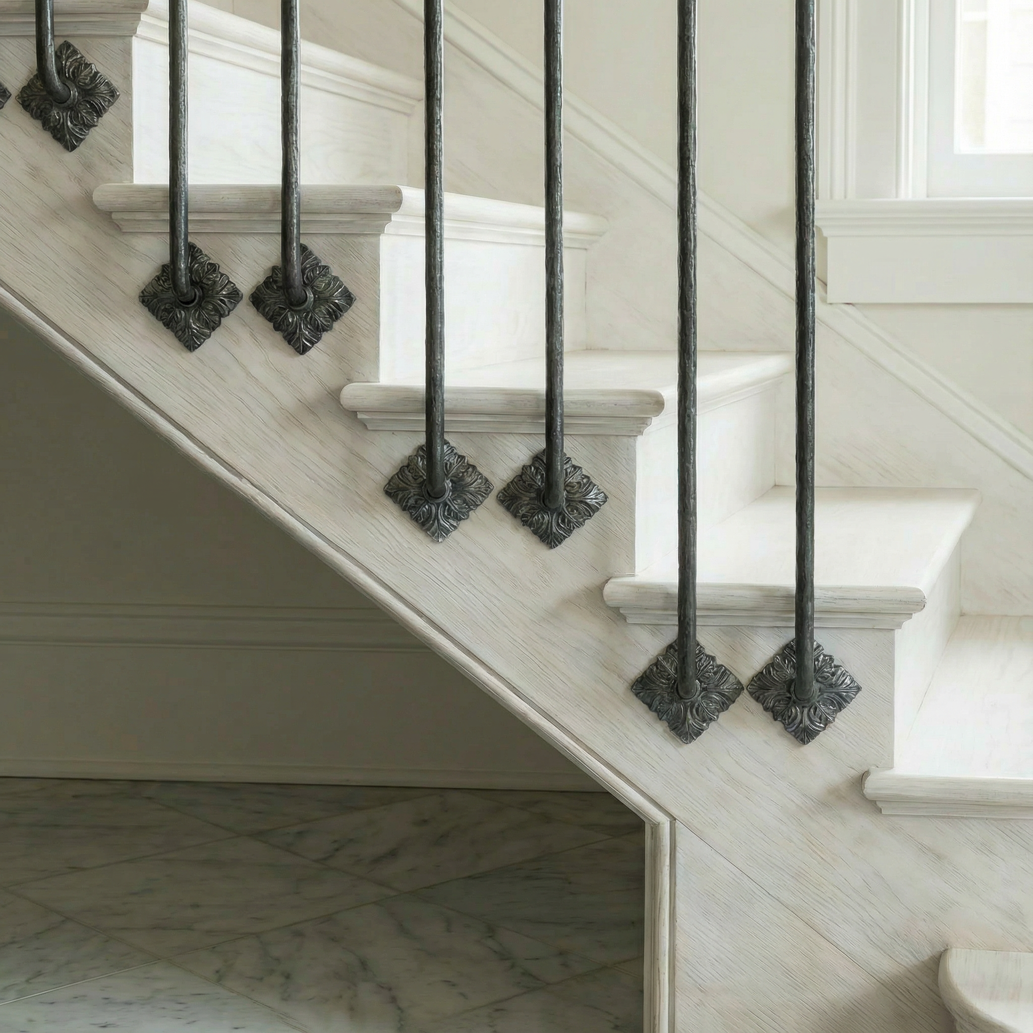 These spindles feature a stunning 90mm Diamond-Shaped Flange with a relief leaf pattern. When installed, the diamond shape draws the eye upward, creating a sense of height and elegance. Combined with our seamless "Hidden Pin" mounting system, they offer a flawless finish with no visible screws.