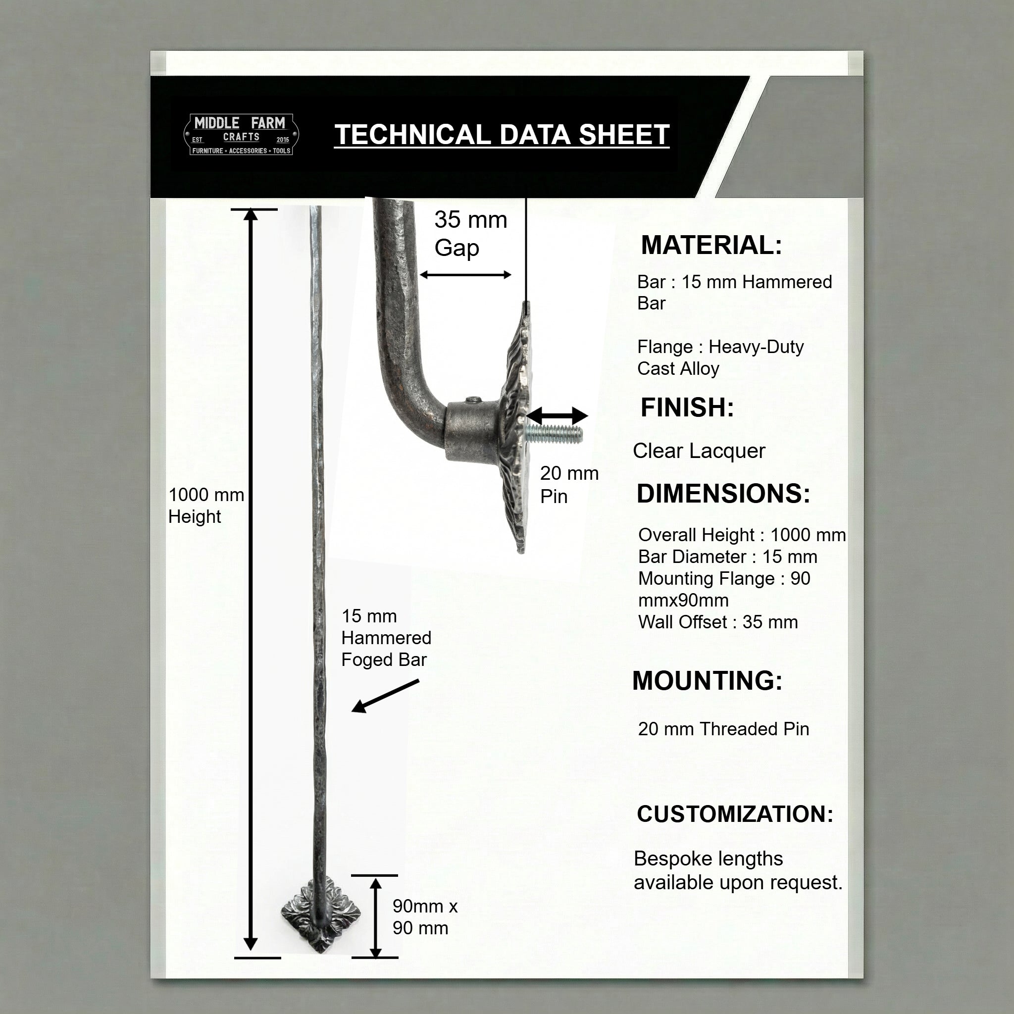 Material: 15mm Solid Forged Steel Bar (Hammered Texture).